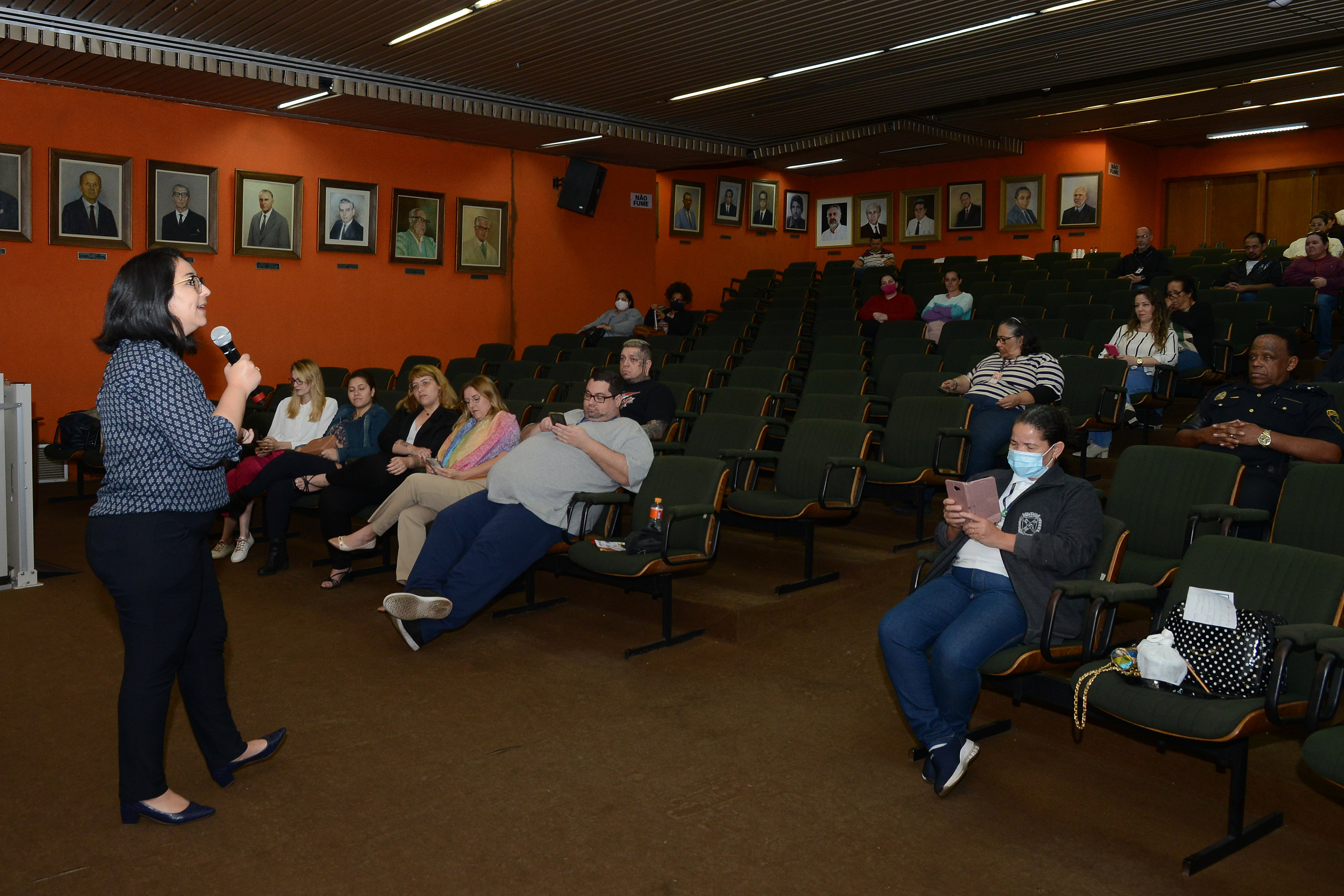 Mais de 100 pessoas passaram pelo anfiteatro do Centro Cívico hoje, 14/09, nos períodos da manhã e tarde, durante o último dia da Semana Interna de Prevenção de Acidentes da Prefeitura (Sipat), com programação voltada para os temas educação financeira e saúde mental no ambiente de trabalho.