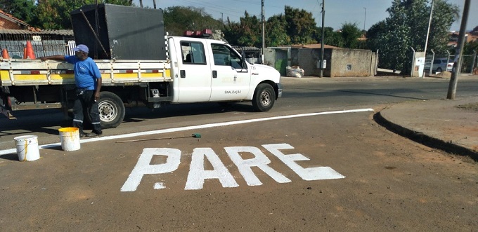 Os serviços também incluem faixa de pedestre, lombada, faixa elevada, eixo de rua, pare, zebrado, faixa de canalização e desaceleração, Linha de Redução de Velocidade (LRV), entre outros.