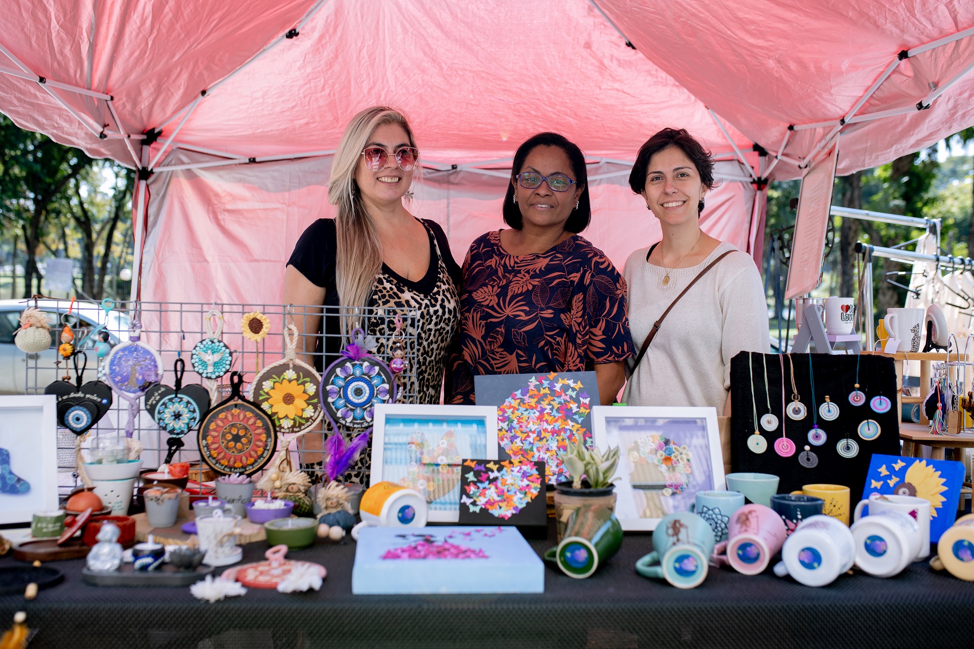 As artesãs Janaina Dorta, Venise Santana e Amanda Prates divulgaram o seu trabalho