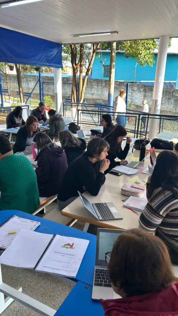 Já no dia D do PPP (Projeto Político Pedagógico) as equipes puderam revisitar o Projeto Político-Pedagógico (PPP) das escolas, promovendo o debate coletivo com a comunidade escolar sobre os diferentes aspectos do documento, com a análise e atualização do plano de ação, garantindo que esteja alinhado com as necessidades e objetivos da escola.
