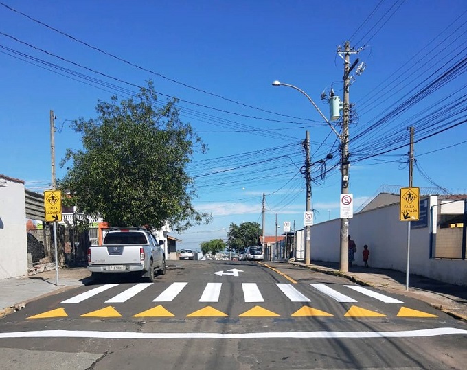 Sinalização reforçada em frente a escola estadual Abigail Grillo, na Vila Rezende- Divulgação