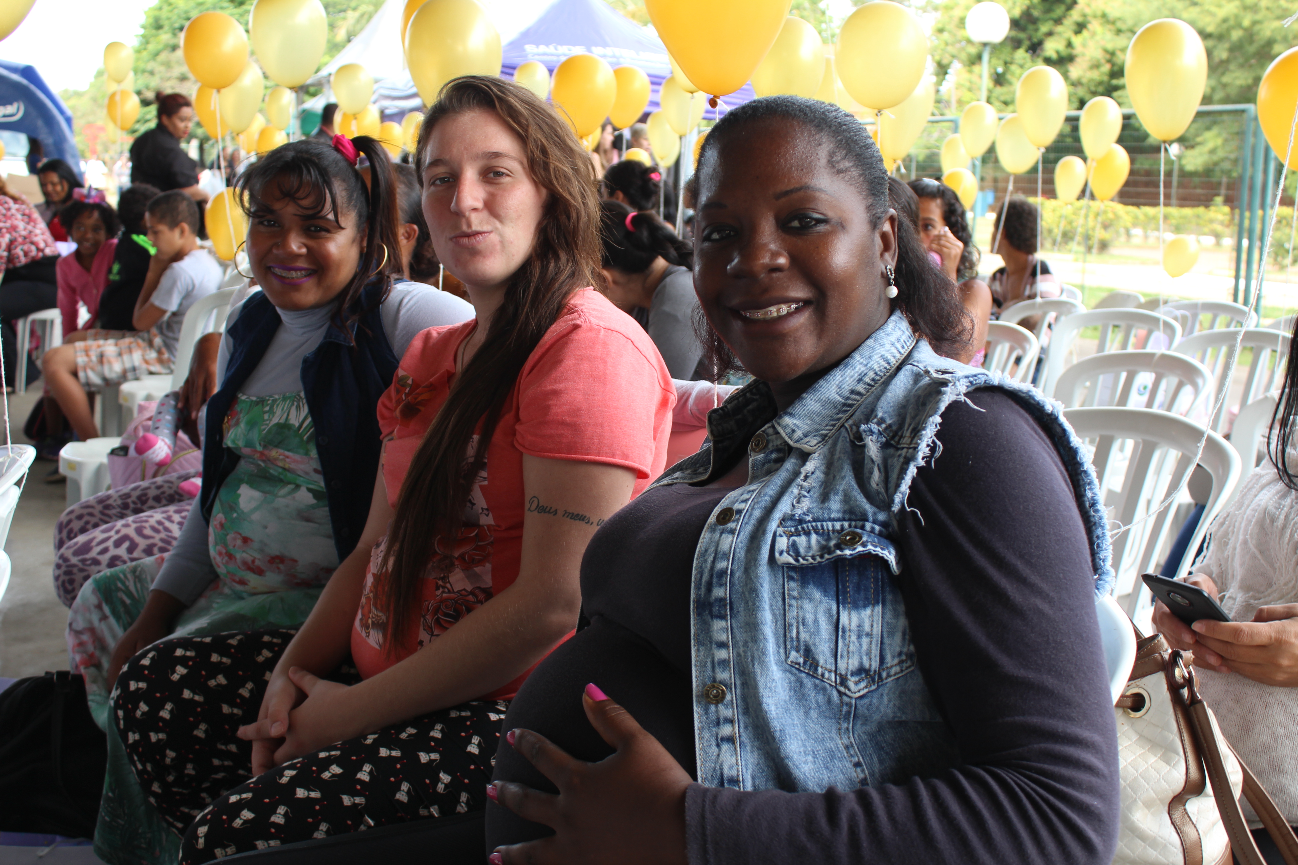 Da região do USF Monte Líbano II vieram as amigas Cremilda de Assis Anacleto, 32, Monique Alves, 23 e Kelly Mariana Aparecida de Campos, 35, todas gestantes. Decidiram participar do evento porque defendem a importância de a mãe poder amamentar o filho onde quer que esteja: “Temos assistido na TV essa discussão sobre dar mamar em espaço público. Claro que esse é um direito de toda mãe e de todo bebê. E este é um momento de defender o que pensamos”, disse Kelly, que se tornou a porta-voz do grupo. “Pode colocar aí que todas pensam do mesmo jeito”, enfatizou Monique.