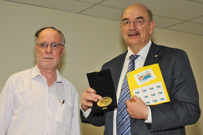 O prefeito Barjas Negri aproveitou a visita do ministro para presenteá-lo com a Medalha alusiva aos 250 anos de Piracicaba, além do Selo Comemorativo.