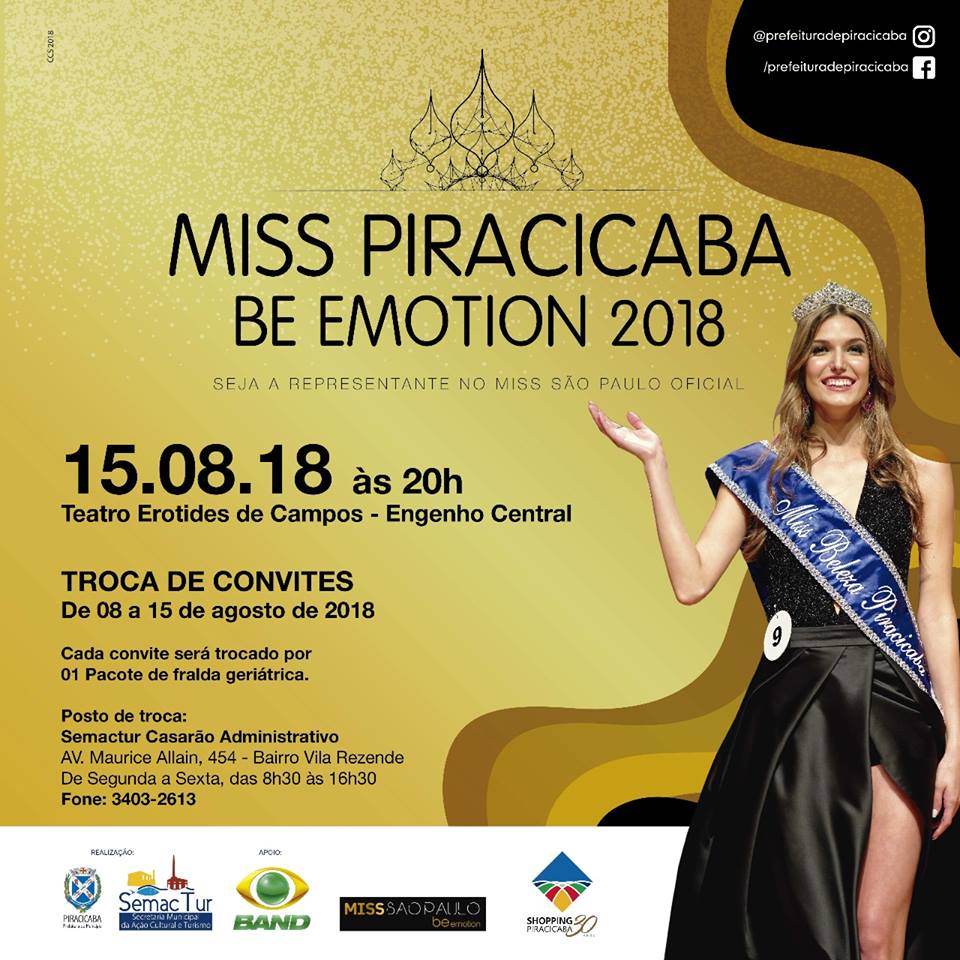 Essa etapa, além de eliminatória, também é uma fase preparatória para a vencedora do Miss Piracicaba Be Emotion, que concorrerá ao Miss São Paulo. A realização do Miss Piracicaba Be Emotion é da Secretaria Municipal da Ação Cultural e Turismo (SemacTur).