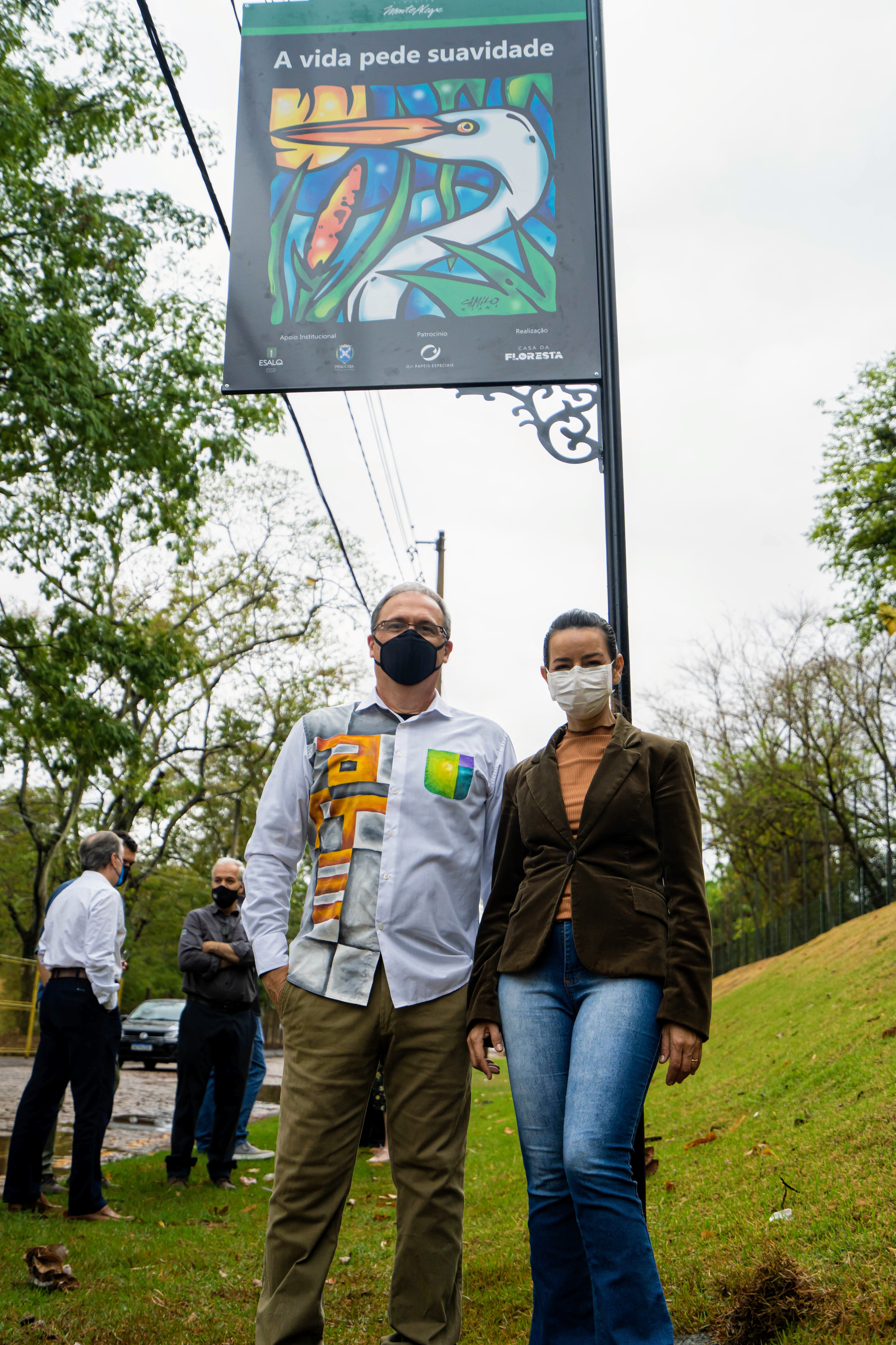 Camilo Riani, artista responsável pelo projeto e Monica Salles, da Comunicação da Oji Papéis.
