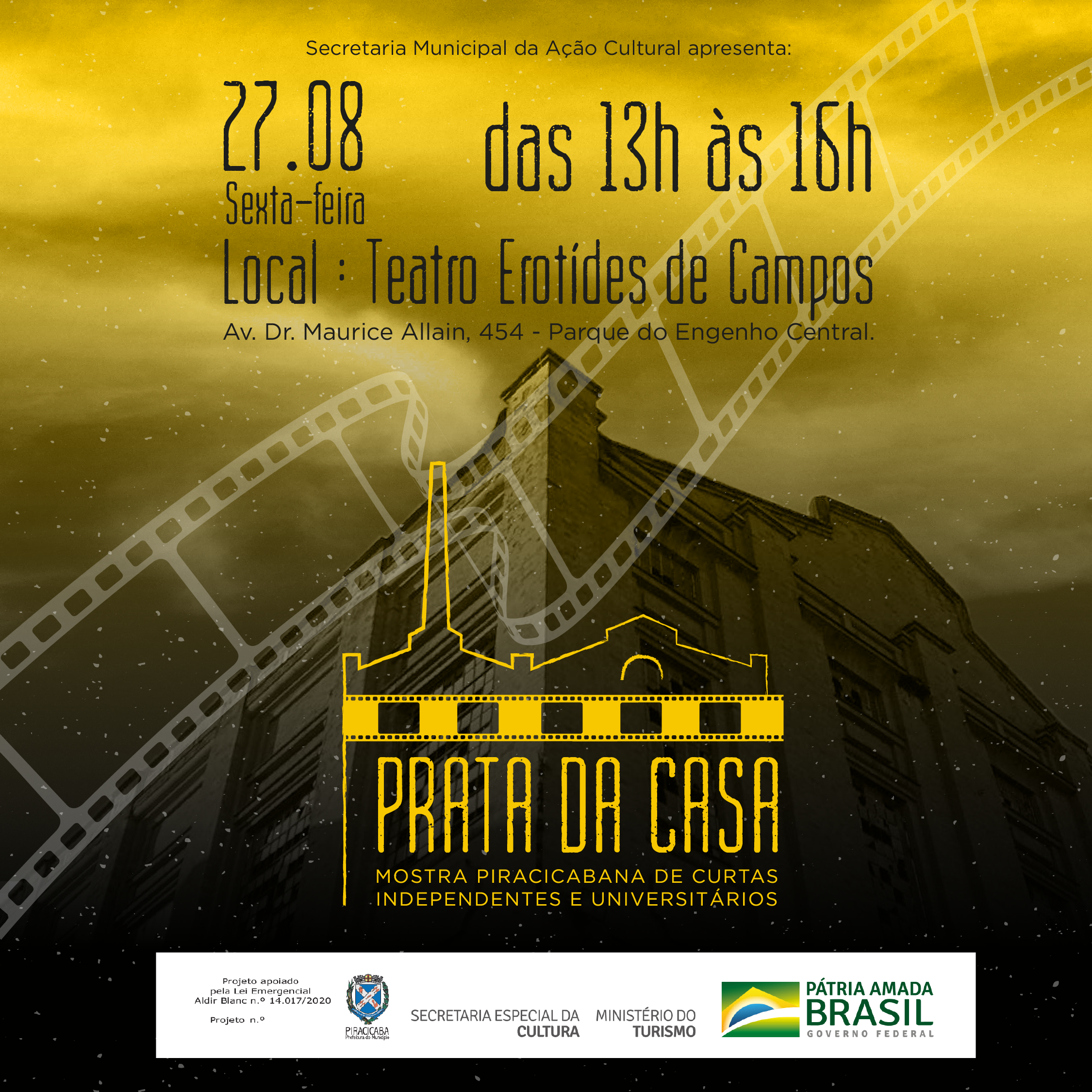 SERVIÇO – 1ª Edição da Mostra de Curtas Prata da Casa. Amanhã, 27/08, às 13h, no Teatro Erotídes de Campos, no Parque do Engenho Central. A entrada é gratuita e os ingressos devem ser retirados com uma hora de antecedência. O projeto foi contemplado no edital de Mostras e Festivais da Lei Aldir Blanc.