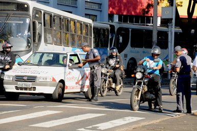 Motoristas e pedestres são orientados em blitz educativa na região central