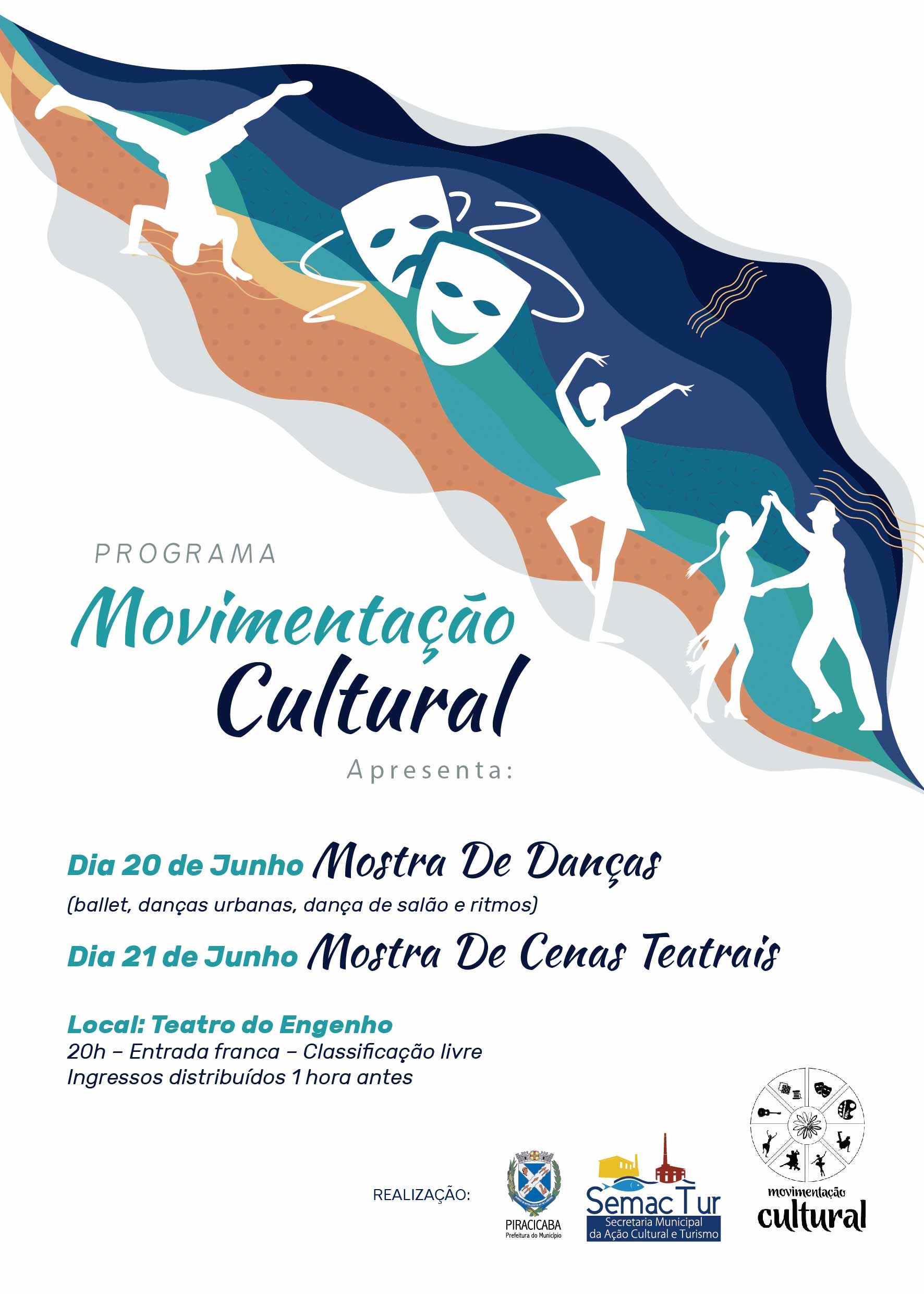 O Teatro Erotides de Campos, no Engenho Central recebe nos dias 20 e 21 de junho, a 1ª Mostra de Danças e Cenas Teatrais do programa Movimentação Cultural. As apresentações contarão com mais de 300 pessoas, entre alunos e professores das modalidades de teatro, balé, danças urbanas e dança de salão, além de grupos convidados como a Cedan – Cia Estável de Dança de Piracicaba. Os espetáculos acontecem às 20h, gratuitamente. Os ingressos devem ser retirados na bilheteria do teatro, com uma hora de antecedência.