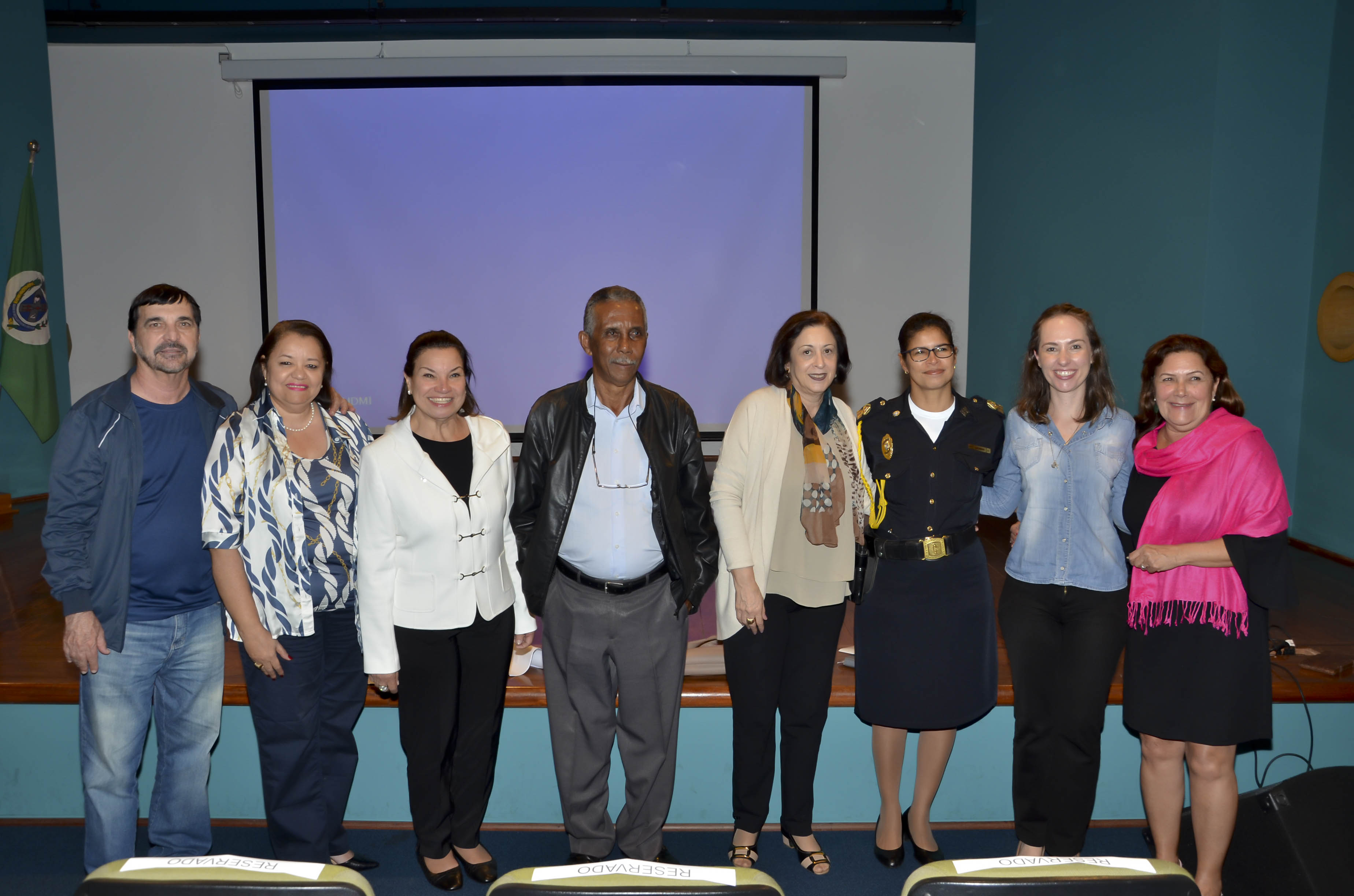 Pedro Mello, Vilanir Braz, Rosângela Camolese, João Manoel, Angela Correa, Comandante Lucineide Correa, Liliane Sartori (Semtre) e a presidente do FUSSP, Sandra Negri