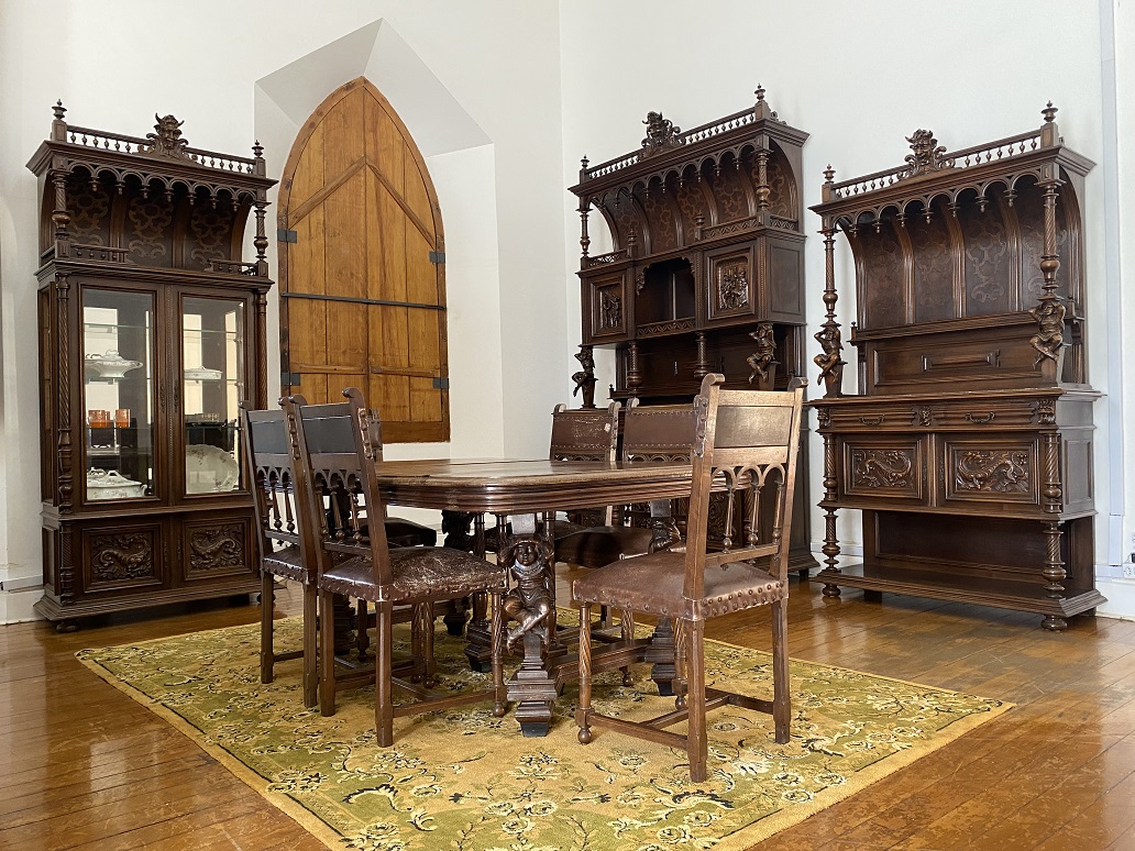 Uma mesa, seis cadeiras, uma cristaleira, um aparador e um louceiro, um conjunto completo de jantar originário da França, talhado em madeira nogueira e produzido no estilo medieval são as novas peças do vasto e rico acervo do Museu Histórico e Pedagógico Prudente de Moraes, equipamento mantido pela Prefeitura de Piracicaba por meio da Semac (Secretaria da Ação Cultural). Os objetos podem ser visitados gratuitamente de terça a sexta-feira, das 9h às 17h, e aos sábados e feriados, das 10h às 14h.