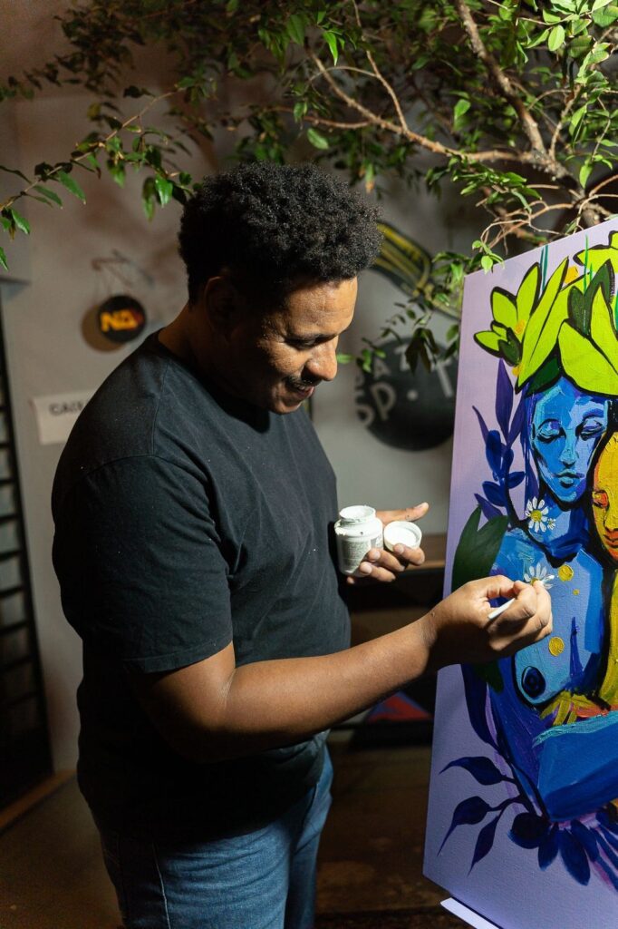 As obras retratam festas, cenas do cotidiano e símbolos da identidade local, com abordagens que percorrem o século passado até a contemporaneidade. Cores intensas e formas expressivas dão corpo à linguagem artística de Diógenes, que propõe uma reflexão sobre as contribuições da cultura afro na construção da história regional e os caminhos possíveis para seu futuro.