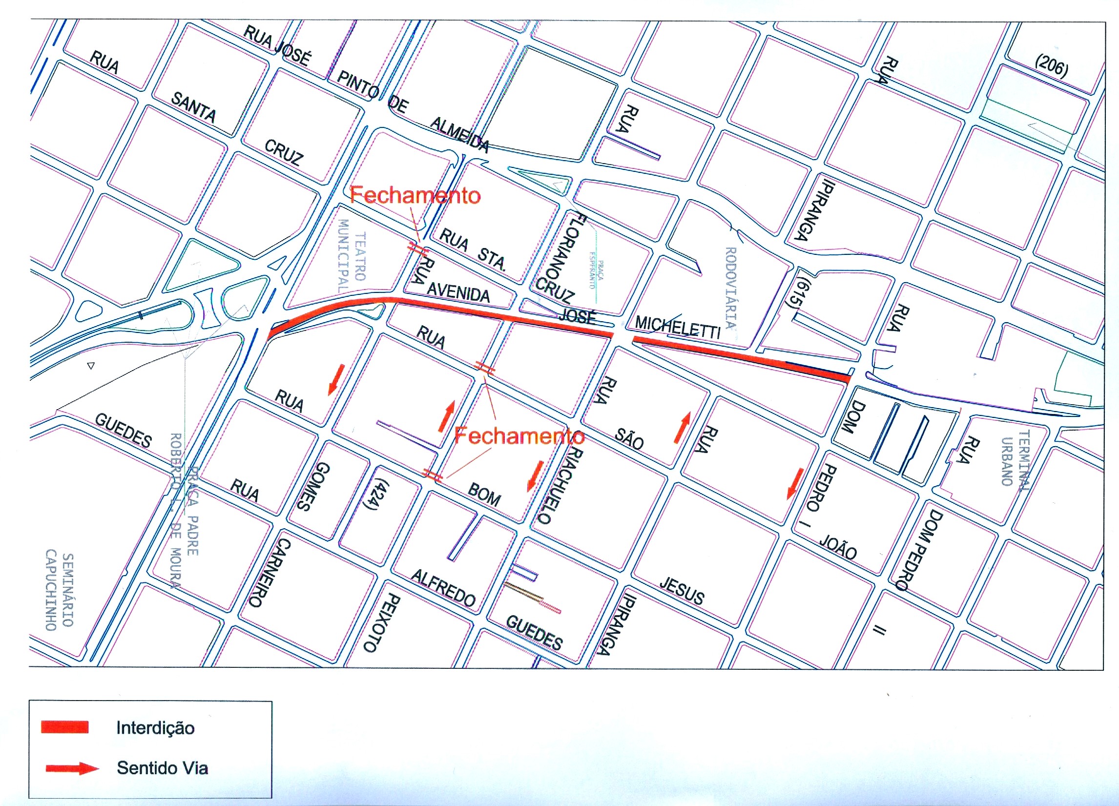 INTERDIÇÃO – Para a realização das melhorias será necessária a interdição parcial, pela Semuttran, da José Micheletti, a partir da terça-feira, 19, entre a avenida Independência e rua Dom Pedro I. Por isso, é importante que os motoristas fiquem atentos à sinalização e à movimentação de máquinas no local.