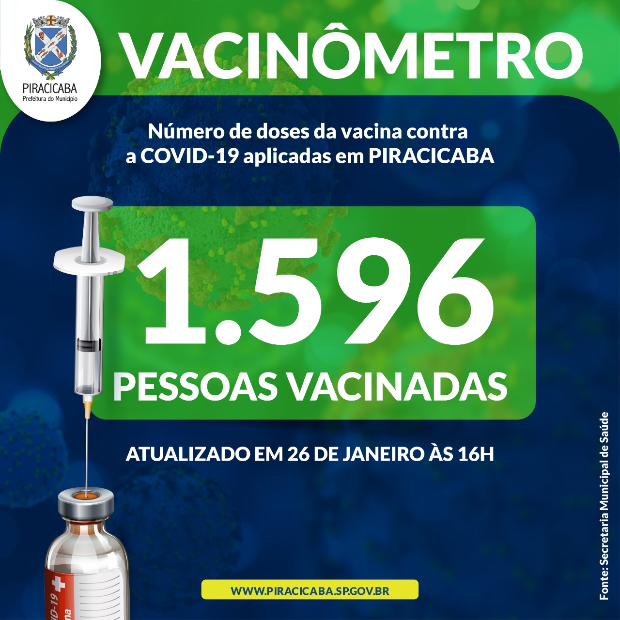 IMUNIZAÇÃO – Em Piracicaba, o Vacinômetro produzido pelo Centro de Comunicação Social (CCS) da Prefeitura, com base em dados da Vigilância Epidemiológica (VE), marca que 1.596 pessoas já receberam a primeira dose da vacina contra a Covid-19 desde quinta-feira (21/01), quando iniciou a campanha oficial de imunização na cidade, envolvendo profissionais de UPAs, SAMU, Hospitais e VE, além das ILPIs. Na manhã de hoje, terça-feira (26/01), equipes da VE iniciaram a imunização de 140 pessoas do Lar Betel, entre idosos e profissionais que trabalham na instituição. Ainda esta semana, o Lar dos Velhinhos será beneficiado, com 584 doses, também atendendo seus residentes e profissionais que lá atuam.