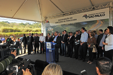 "Uma grande obra, que vai beneficiar o município, tirar o trânsito de passagem do Centro da cidade e beneficiar todo o Aglomerado Urbano. São mais de 9 km de anel viário, uma ponte sobre o rio Piracicaba, um túnel, uma grande obra entregue. E nós estamos autorizando uma segunda obra que não estava prevista no contrato original. São mais de R$ 19 milhões, que é o acesso ao bairro Monte Alegre e o segundo acesso à Esalq, a Escola Superior de Agricultura", disse Alckmin, que explicou que a licitação deve ser aberta em breve e as obras iniciadas em novembro.