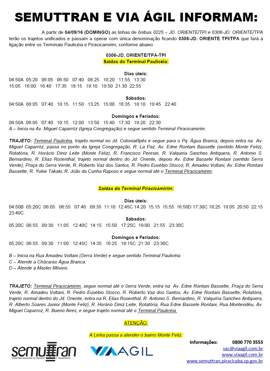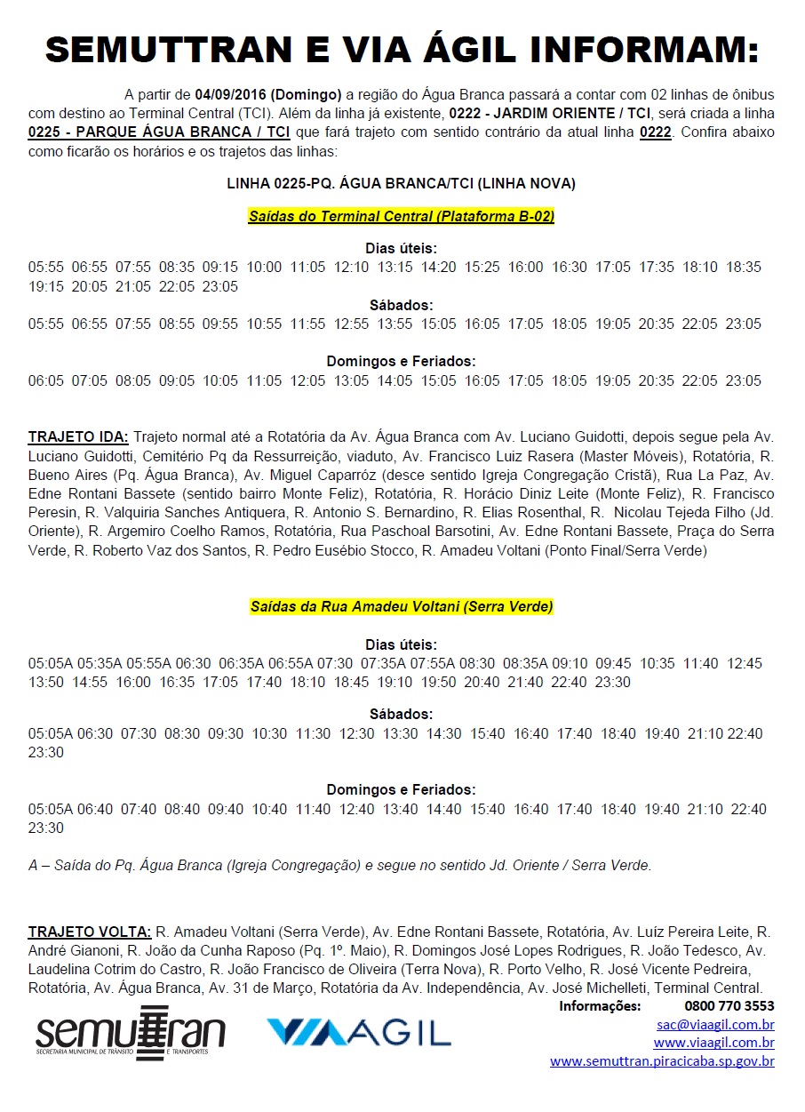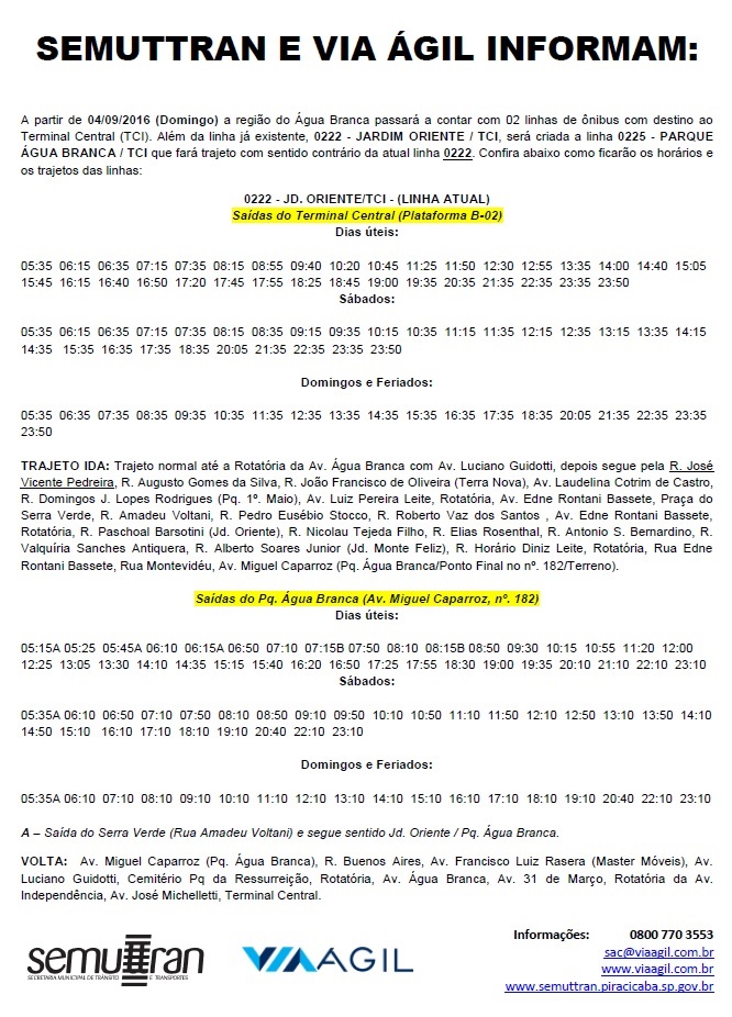 Novo projeto do serviço de transporte coletivo para a região do Água Branca e Jardim Oriente