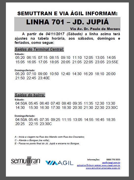 Novos horários para a Linha 701 – Jd. Jupiá/via av. Dr. Paulo de Moraes