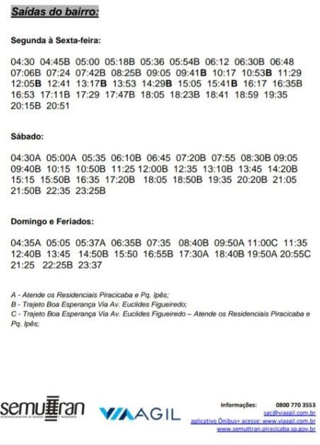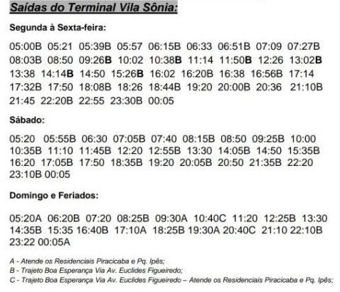 A medida trará melhorias para os moradores da região a partir deste domingo, 26, como segue a tabela abaixo: