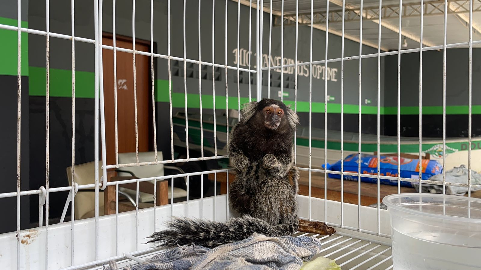 Núcleo de Bem-Estar Animal e PM Ambiental resgatam sagui no bairro Monte Líbano