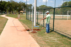 No setor esportivo, que conta com uma área de 11.500 mil metros foram instalados seis postes de oito metros, com três luminárias cada e 20 de três metros também para iluminação baixa.