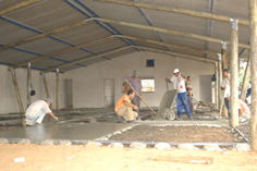 No espaço, que é um galpão, que mede 14 x 31,50, com cozinha e sanitário; semelhante aos construídos no Parque dos Eucalíptos e Novo Horizonte, os funcionários estão azulejando a cozinha e colocando os postinhos para o alambrado na parte externa, além de estarem confeccionando na Sema, os portões, um pequeno para pedestre e dois grandes,