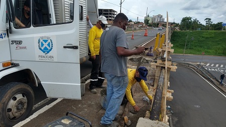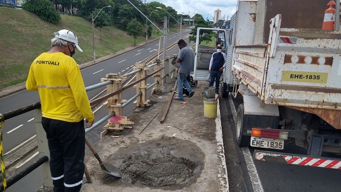 Equipes da Secretaria Municipal de Obras (Semob), executam nesta quinta-feira, 14/01, a manutenção na defensa lateral do Viaduto Hiroaki Torigoi, da avenida Doutor Paulo de Moraes, que passa sobre a avenida 31 de março. O serviço, após concluído, devolve a segurança a motoristas e pedestres que transitam pelo trecho. A proteção lateral foi danificada em dezembro, em virtude de um acidente de trânsito no qual um veículo desgovernado despencou do alto do viaduto. Relembre o caso (do G1 Piracicaba) Um carro caiu de um viaduto no cruzamento da Avenida 31 de Março e Avenida Dr. Paulo de Moraes, na tarde e quarta-feira (16), em Piracicaba (SP). A motorista foi socorrida em estado grave. O caso aconteceu no Viaduto Hiroaki Torigoi, na região central. O veículo passou pela grade de segurança e caiu de uma altura de seis metros, segundo a Defesa Civil. A vítima, uma mulher de 53 anos, foi levada para a Santa Casa. A barreira de ferro do viaduto não suportou a força da batida e foi levada. No momento da queda, o carro chegou a capotar e a frente do veículo ficou totalmente destruída. A rua foi interditada para o resgate da vítima e agentes da Secretaria Municipal de Trânsito e Transporte (Semuttran) jogaram serragem na pista para evitar novos acidentes.