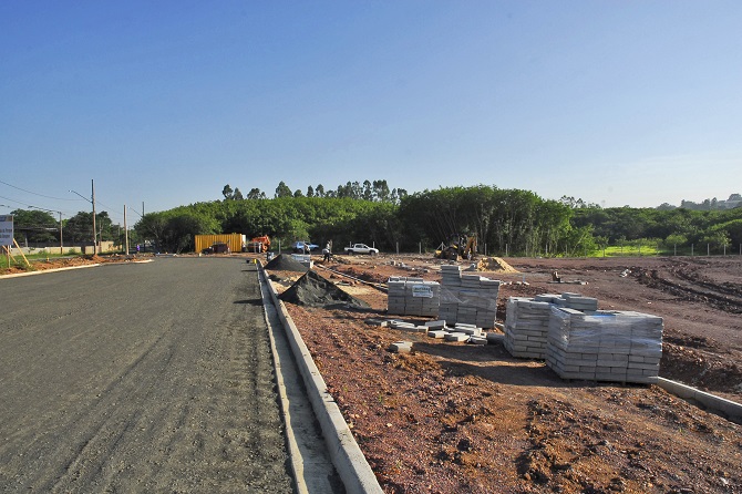 Agora, os trabalhos concentram-se no fechamento da área em alambrado, na pavimentação da área de estacionamento e na implantação das guias do pavimento das pistas de caminhada. Em seguida, serão instalados, no solo, os eletrodutos da fiação dos postes de iluminação e, posteriormente, serão iniciados os serviços de assentamento dos pisos intertravados das pistas de caminhada.