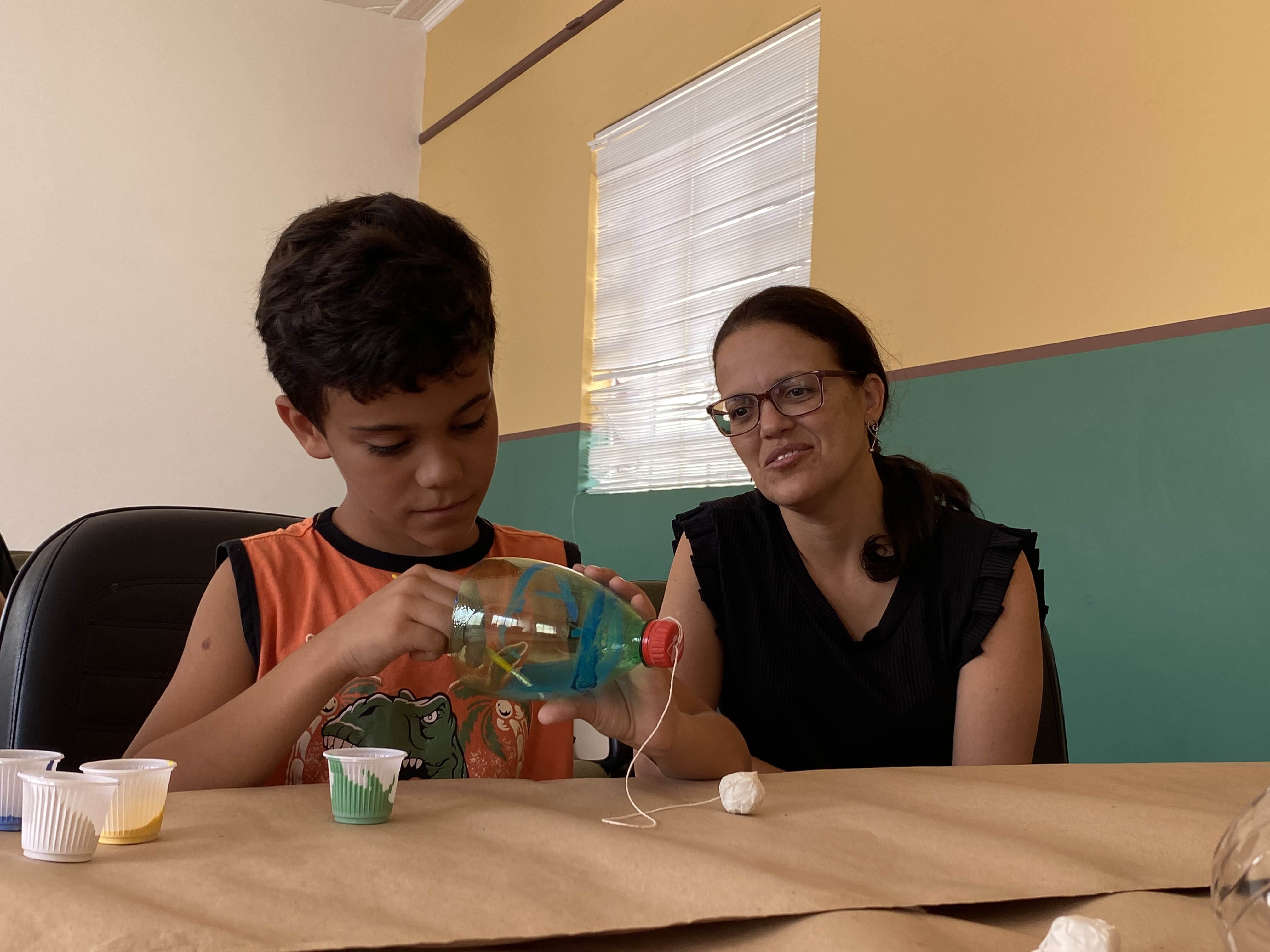 Na atividade, as crianças aprenderam a confeccionar dois brinquedos a partir de material reciclado, o bilboquê e o vai e vem. Elas também puderam usar a criatividade para pintar os objetos e ainda brincaram com os brinquedos que elas mesmas montaram.