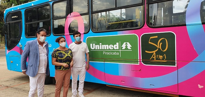 Pelo quarto ano consecutivo, a Unimed Piracicaba, em parceria com a Prefeitura Municipal, lançou ônibus da saúde em alusão aos movimentos Outubro Rosa e Novembro Azul, meses em que são divulgadas campanhas de prevenção aos cânceres de mama e próstata. A iniciativa ainda conta com o apoio das secretarias de Saúde, Trânsito e Transportes, Fundo Social de Solidariedade de Piracicaba e pela primeira vez, da empresa TUPi. Os personagens Dona Rosa e Seu Bigode, criados exclusivamente pelo chargista Luís Marangoni para essa campanha, estão de volta, utilizando máscaras por conta da pandemia de Covid-19. O presidente da Unimed Piracicaba, Carlos Joussef, disse que a parceria com a Prefeitura e a TUPi são de grande valia, pois faz mulheres e homens terem ciência de que o câncer é uma doença séria, porém, ao ser diagnosticada precocemente, as chances de cura são altas. “Depois que começamos o projeto, muitos pacientes entenderam que é necessário fazer exames para se prevenir. Quando a informação está por toda a cidade, as pessoas se mobilizam e procuram um médico”, revelou ele ao lembrar que o ônibus circulará até o fim de novembro pelas principais avenidas de Piracicaba. Para o secretário de saúde, Dr. Pedro Mello, o ônibus já se tornou uma ideia esperada pela população e a cidade deve preservar essa iniciativa. “São marcas que despertam a atenção e a consciência das pessoas sobre a necessidade da prevenção”, afirmou. No entender do secretário, a parceria com a Unimed demonstra também o trabalho integrado em Piracicaba, entre os setores público e privado, o que fortalece o serviço de saúde do município. O secretário de Trânsito e Transporte, Jorge Akira, garantiu que o ônibus circulará nos próximos meses nas principais avenidas de Piracicaba. “Solicitamos à TUPi que o ônibus percorra, periodicamente, as linhas troncais da cidade, ou seja, as que ligam os terminais aos bairros da cidade. Desta forma, conseguimos dar grande visibilidade à campanha”, finalizou Akira.