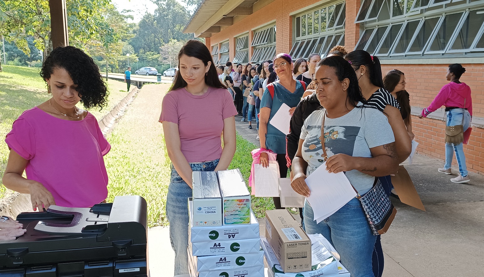 A equipe da Semdettur imprimiu cópias de currículos para os participantes