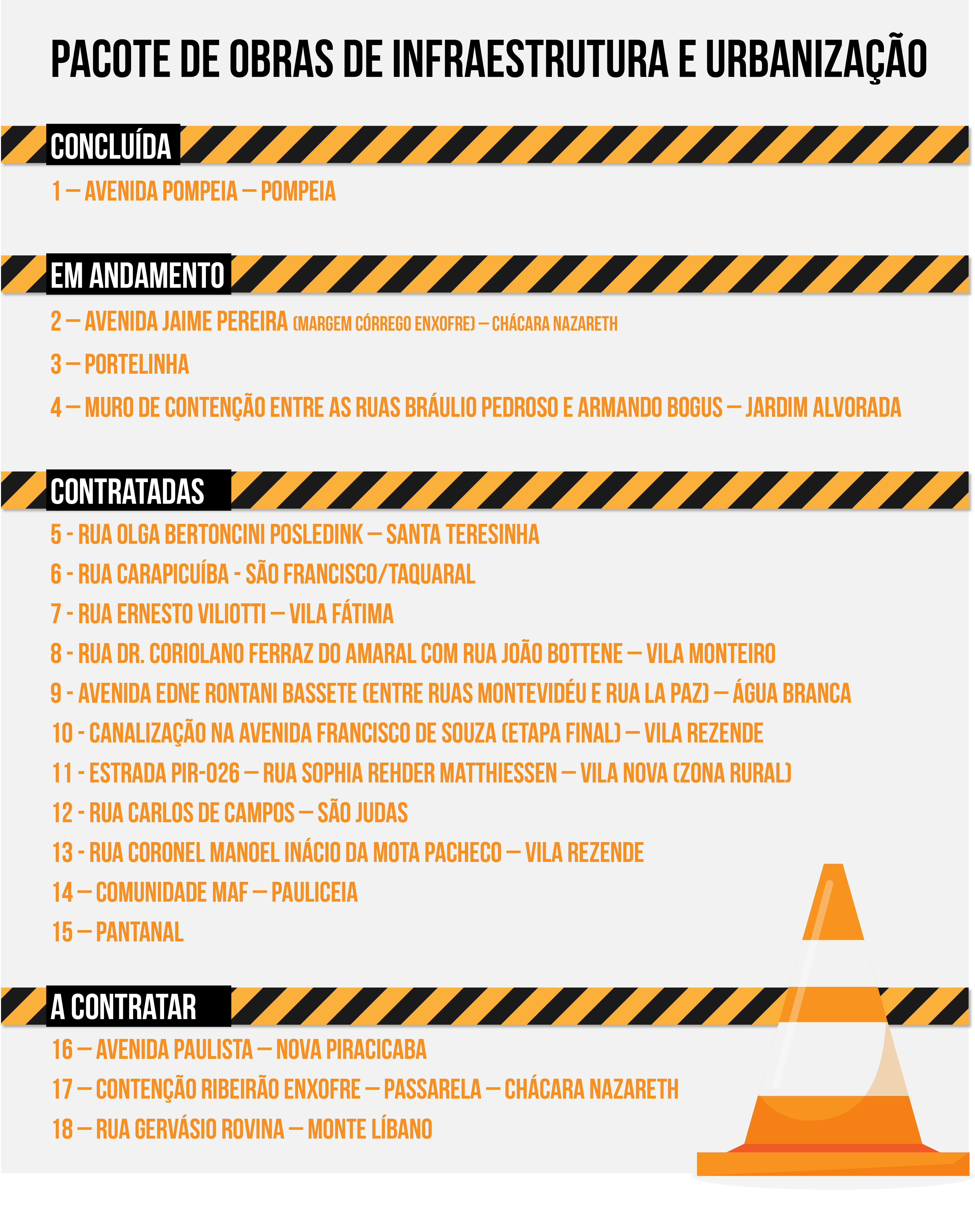 A CONTRATAR – O pacote também inclui obra de contenção de alagamento na avenida Paulista, Nova Piracicaba, em trecho entre as ruas do Pelourinho e dos Imigrantes. A empresa responsável será a Pontuali Construtora e Engenharia. O local sofre com enchentes pela incapacidade hidráulica das redes antigas, muitas delas obstruídas por raízes de árvores. Neste trecho, serão instalados 236 metros de tubulação para condução das águas pluviais e a construção de 10 novos poços de visita, além de 8 unidades de boca de lobo.