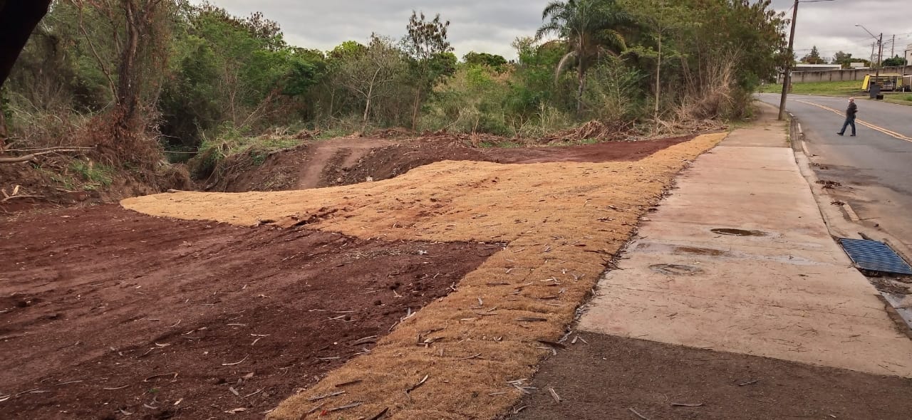 Já foi iniciada, também, a obra de contenção de erosão para recuperação da margem na ponte do córrego do Enxofre e de parte da calçada na avenida Jaime Pereira, na rotatória para a avenida dos Marins.
