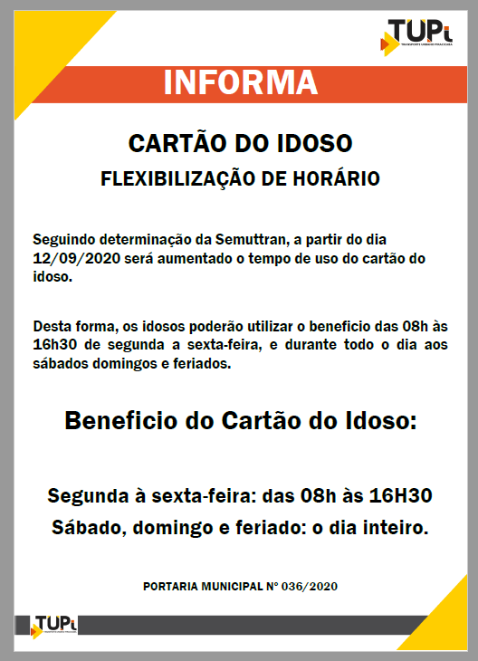 A Secretaria Municipal de Trânsito e Transportes (Semuttran), responsável pelo transporte coletivo em Piracicaba, aumentou em uma hora o uso do Cartão Idoso, por meio da portatia nº 33/2020. Agora, a liberação será a partir das 9h – antes era as 10h – até às 15h. A decisão foi tomada em razão do Decreto nº […]