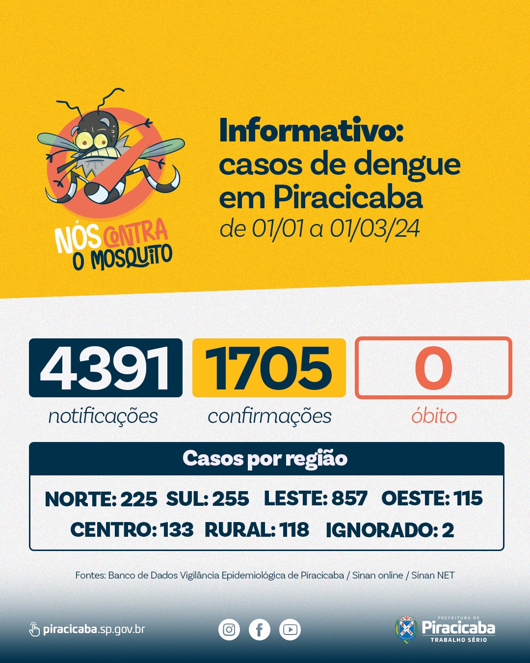 De 01/01 a 02/03 de 2024, a Secretaria da Saúde não registrou óbitos pela doença.