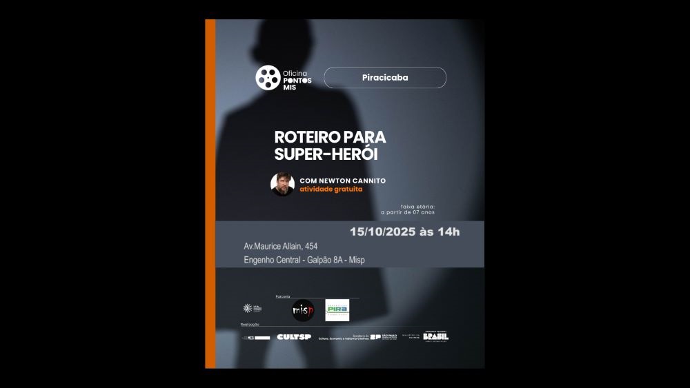 Evento será no dia 15/10, às 14h, no Misp; oficineiro será Newton Cannito, autor de séries premiadas