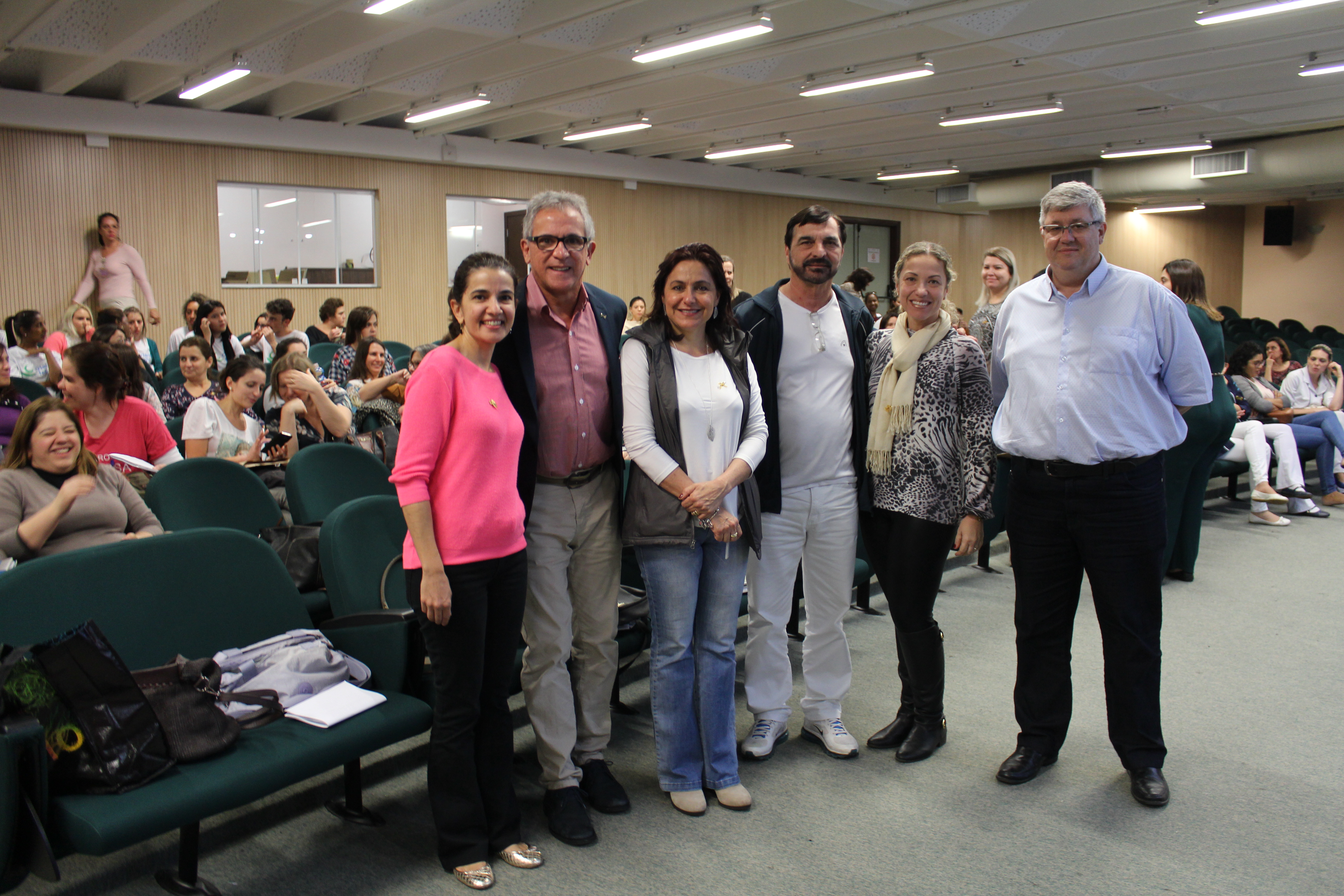 Na foto: Cátia Elvira Ortiz Scarpari, do Departamento de Atenção Básica – Saúde Bucal, uma das organizadoras da Semana Municipal de Amamentação; Dr. Marcus Renato de Carvalho, palestrante; Dra. Rosana de Fátima Possobon, Coordenadora do Cepae – Centro de Pesquisas e Atendimento Odontológico para Pacientes Especiais; Dr. Pedro Mello, Secretário Municipal de Saúde; Tatiana Bonini, coordenadora de enfermagem da Atenção Básica, uma das organizadoras da Semana Municipal de Amamentação, e Dr. Francisco Haiter Neto, diretor da FOP-Unicamp.