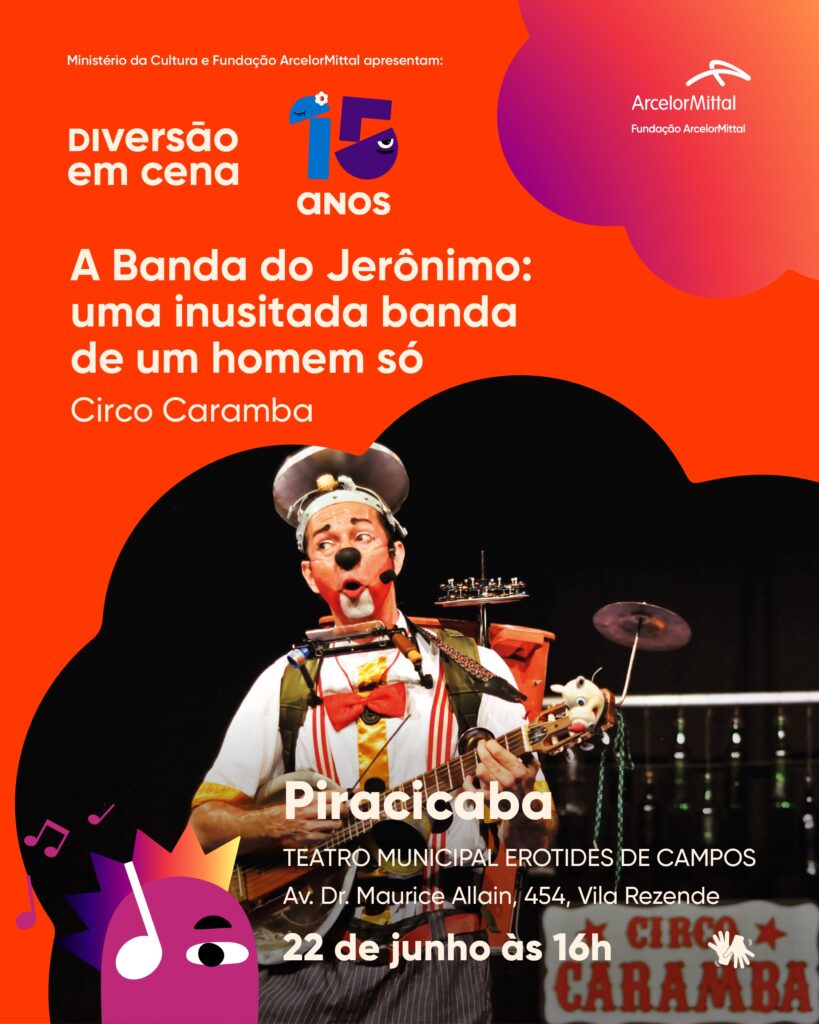 SERVIÇO – A Banda do Jerônimo: Uma Inusitada Banda de um Homem Só. No Teatro Municipal Erotides de Campos (avenida Dr. Maurice Allain, 454 – Parque do Engenho Central). Domingo, 22/06, às 16h. Ingressos gratuitos distribuídos 1h antes na bilheteria.