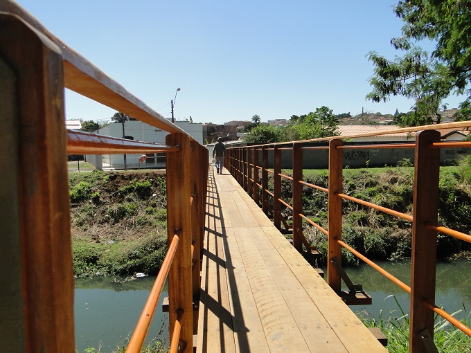 A passarela recebeu novas pranchas de madeira para o piso, além de novo guarda corpo, no mesmo modelo da estrutura anterior. A execução foi da Semob, com colaboração da Secretaria Municipal de Agricultura e Abastecimento (Sema). Com 28 metros de extensão, a passarela é um atalho importante para a população dos dois bairros.