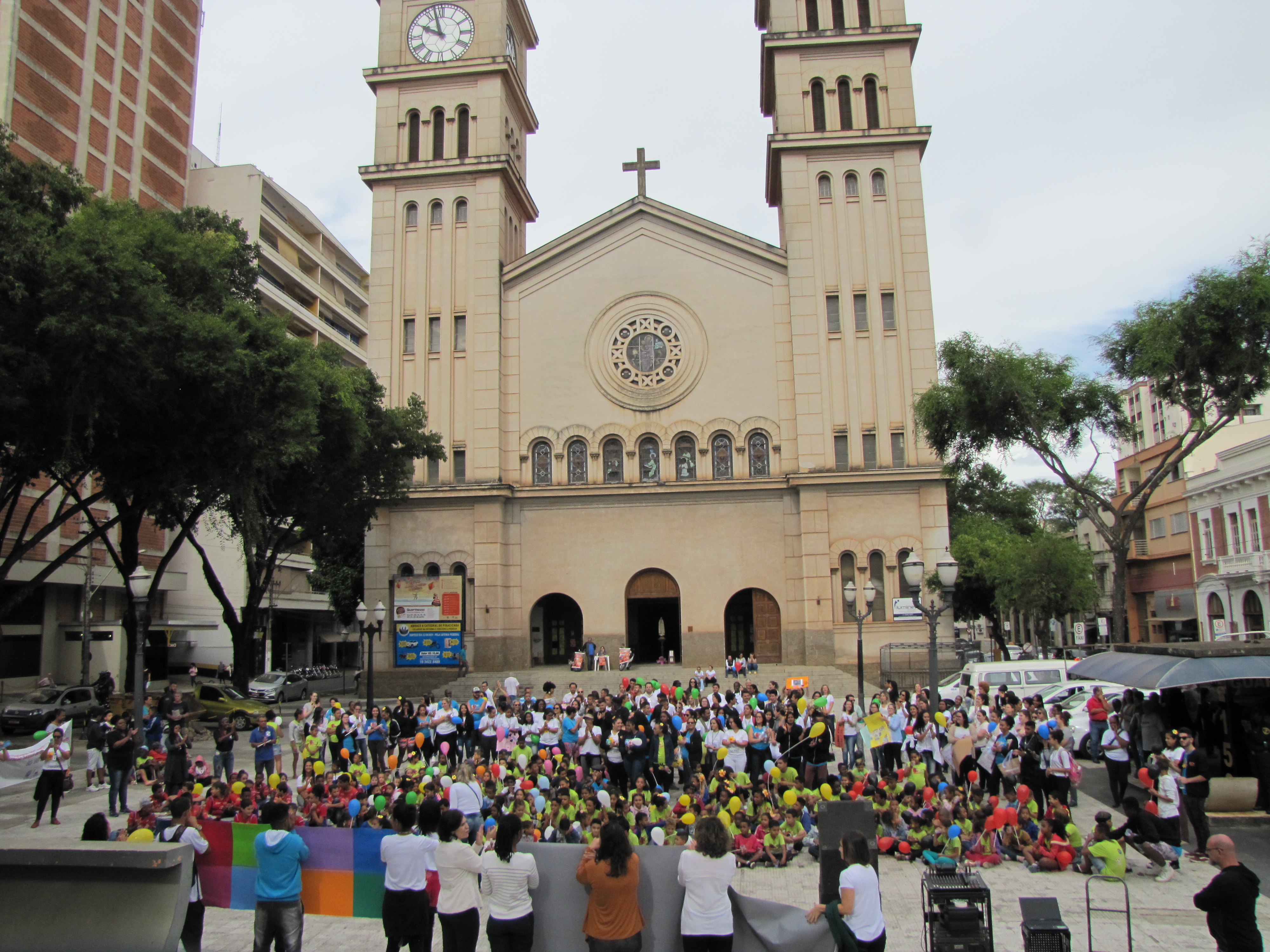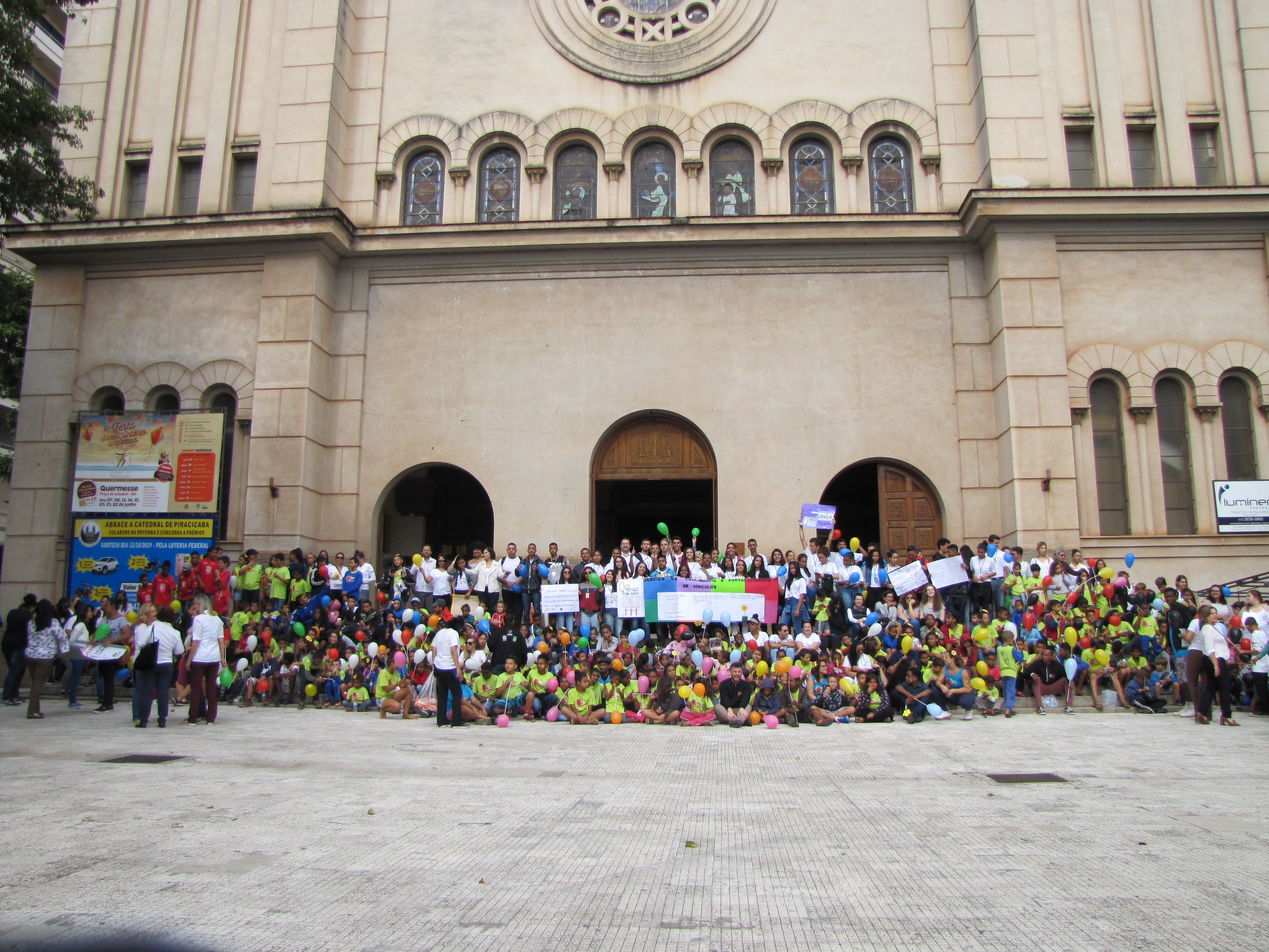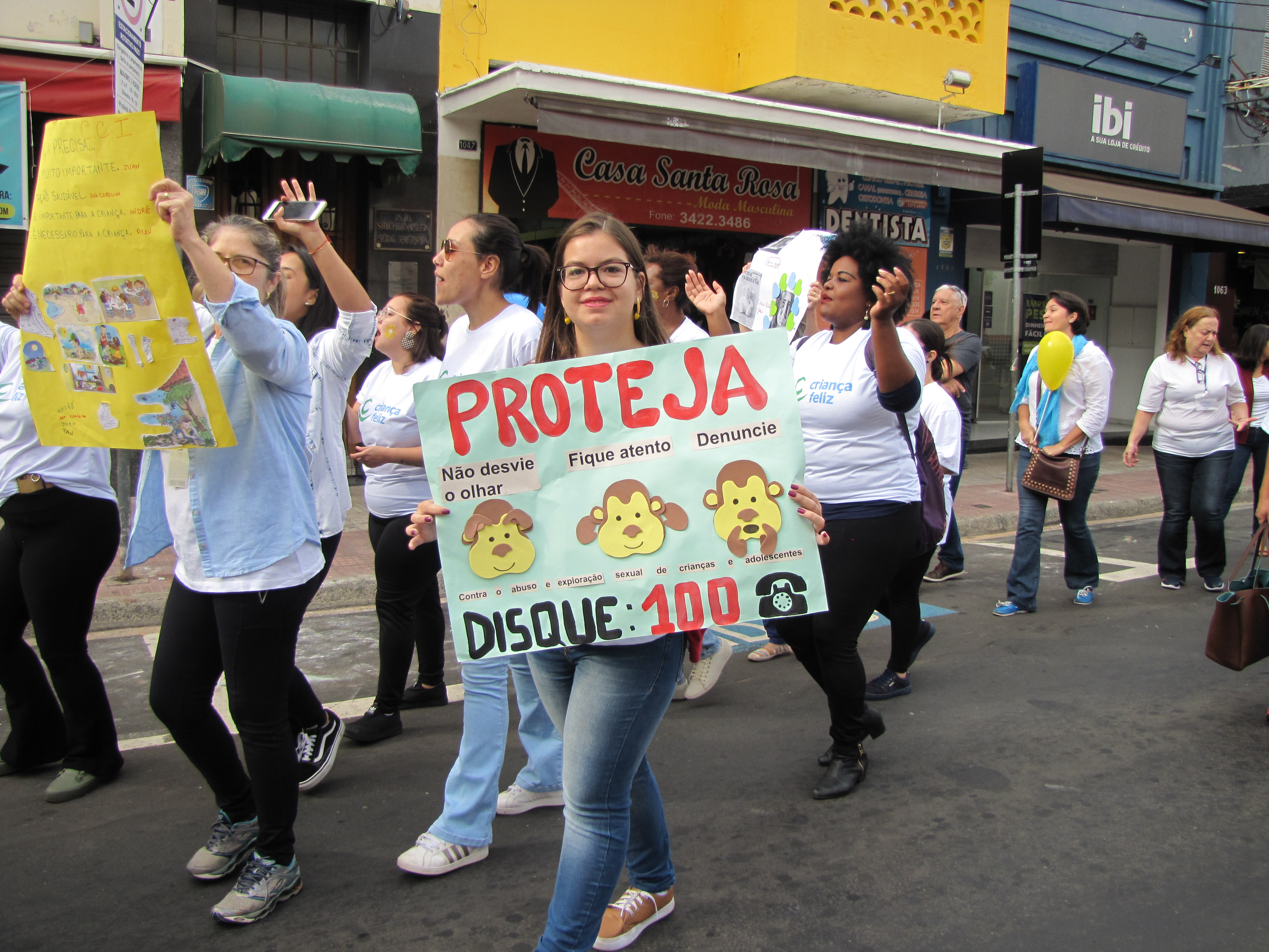 Piracicaba, 17 de maio de 2019 –Mais de 300 pessoas, na maioria crianças e adolescentes, munidas de cartazes, bexigas, muita energia, convicção nas palavras de ordem sintetizam a passeata realizada nesta manhã para sensibilização da sociedade para a temática do abuso e exploração sexual de crianças e adolescentes.