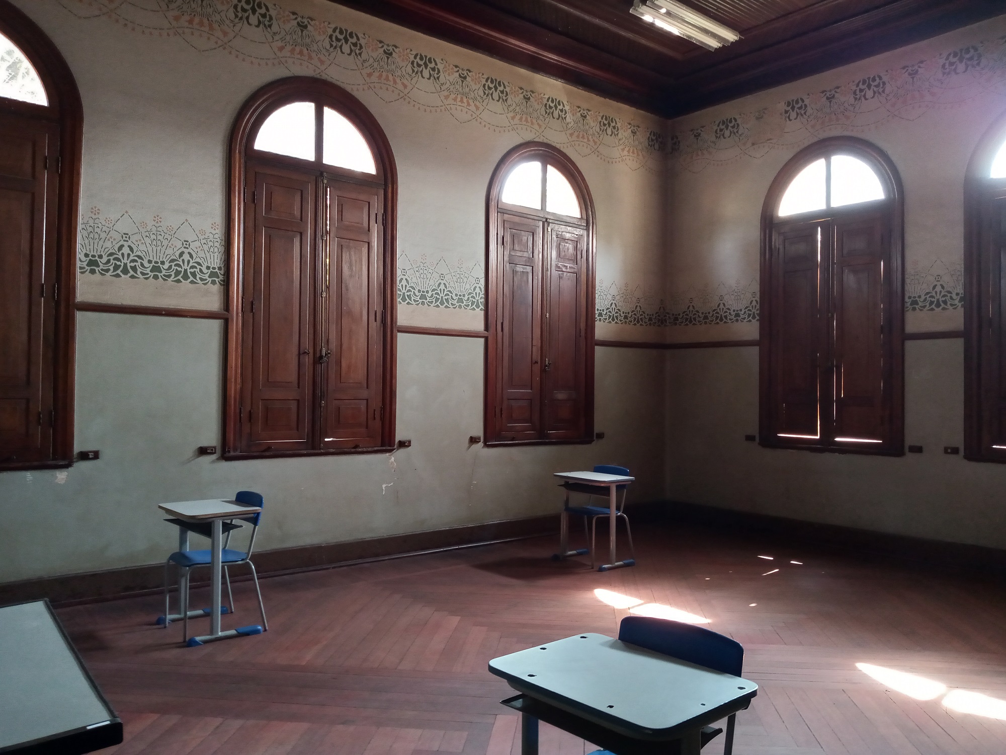 Corredores da escola que no início formou professores como Escola Complementar de Piracicaba