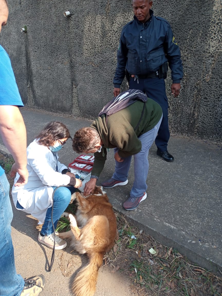 No sábado, após ser acionada por cidadão, a equipe encontrou um animal que caiu de um viaduto e aparentava estar com ferimento nas duas patas dianteiras. O Núcleo de Bem-Estar Animal foi acionado e uma veterinária foi ao local para o primeiro atendimento. O cão foi socorrido para o Núcleo e, segundo Matheus Santos, veterinário do Núcleo, ele foi medicado e passará por exames. Não há fratura aparente e a intenção é localizar o tutor do cachorro. Caso não seja localizado o dono, ele permanecerá no Núcleo até ser adotado.