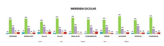 Em Piracicaba, 63% disseram que a Merenda Escolar está “ótima” ou “boa” e 25% responderam que está “regular”. “Ruim” e “péssimo” somam 12%.