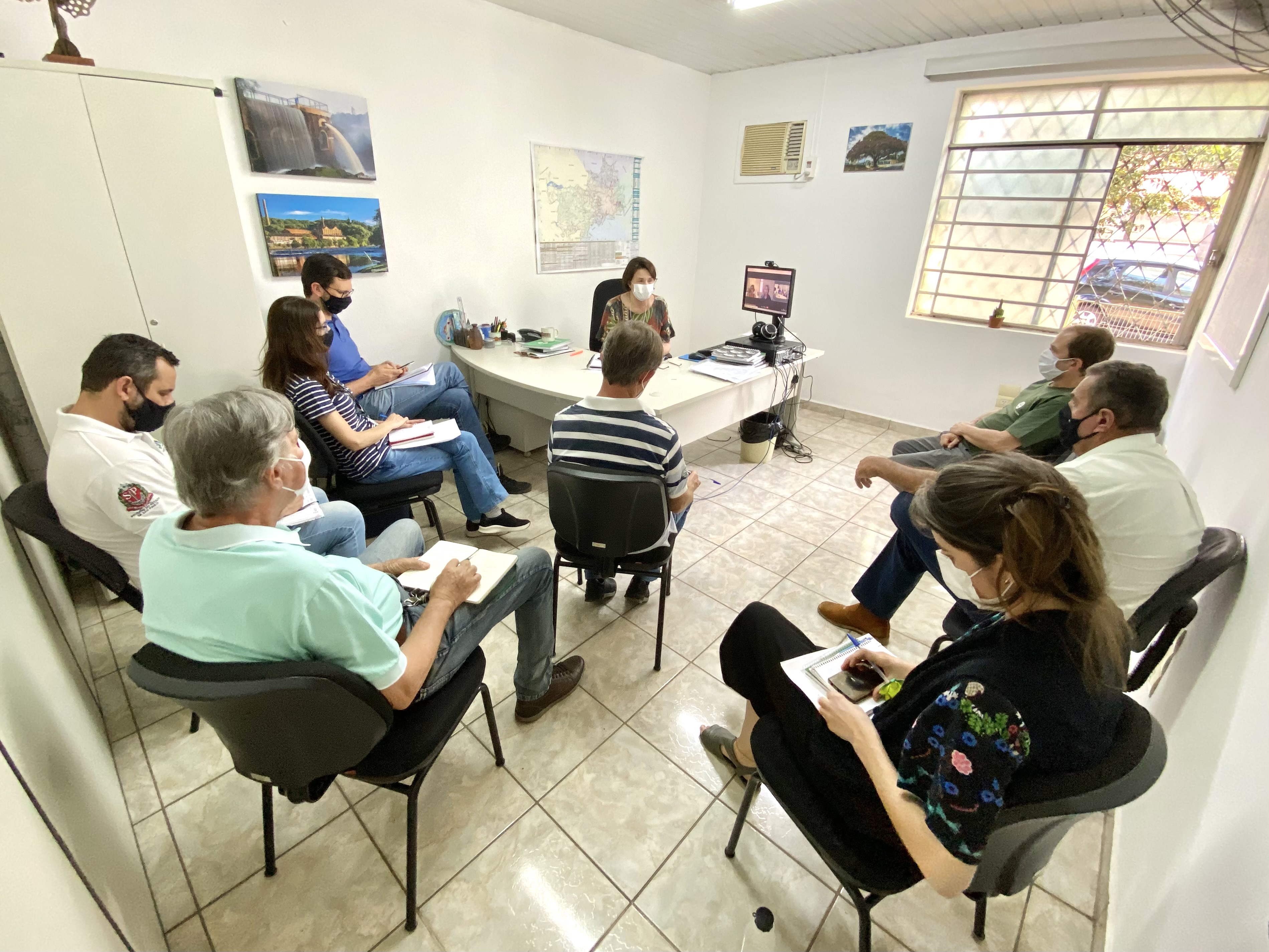 Secretaria da Sema, Nancy Thame em reunião com representantes da Esalq, CATI e das cooperativas.