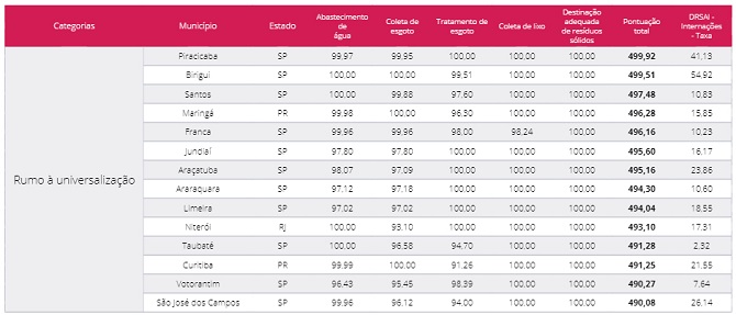 Rumo à universalização (14 cidades) – com pontuação acima de 489