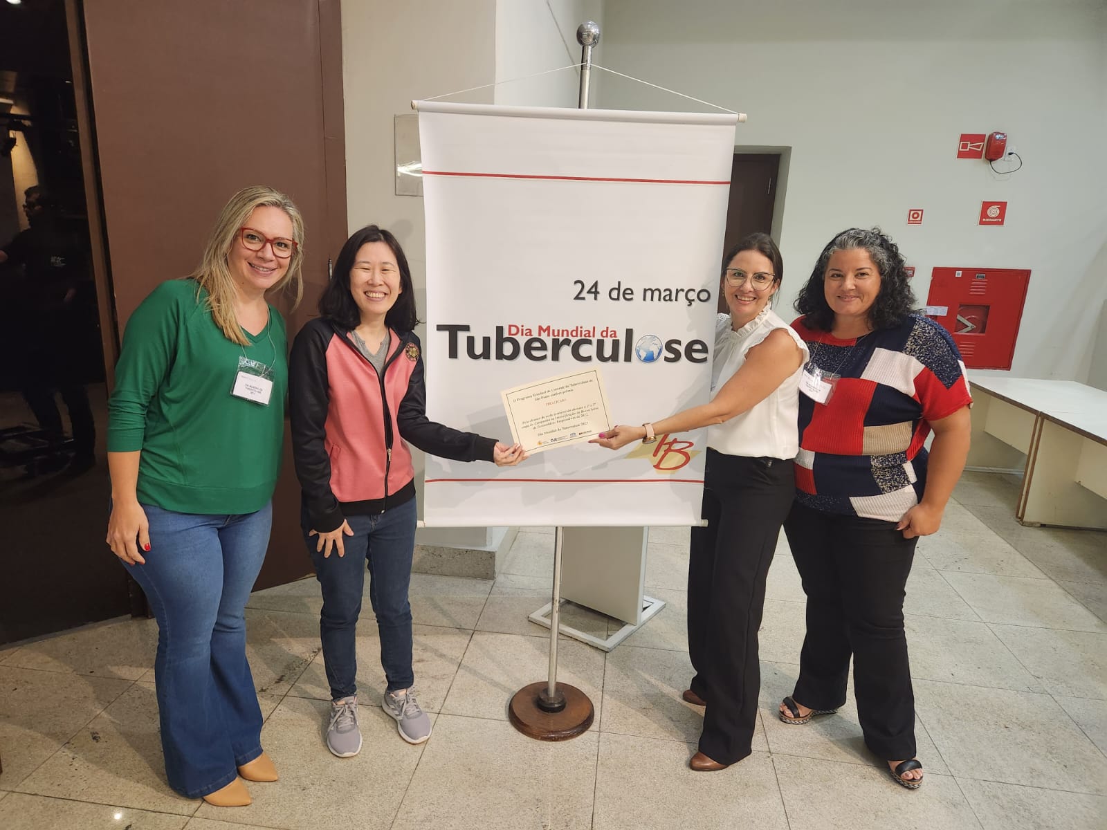 Piracicaba foi premiada pelo Governo do Estado de São Paulo pelo êxito na realização da Campanha de Busca Ativa de Sintomático Respiratório nos meses de março e setembro de 2022. A solenidade de premiação aconteceu na quarta-feira, 22/03, durante evento alusivo ao Dia Nacional de Combate à Tuberculose, na capital paulista, organizado pela Divisão de Tuberculose do Centro de Vigilância Epidemiológica Professor Alexandre Vranjac, vinculado à Secretaria de Estado de Saúde. Representando a Secretaria Municipal de Saúde, receberam a premiação Karina Corrêa Contiêro, diretora de Vigilância em Saúde (Cevisa), Poliana Garcia, interlocutoras do Programa Municipal de Combate à Tuberculose, e Elizabete Vitti, enfermeira do Cedic (Centro de Doenças Infectocontagiosas.