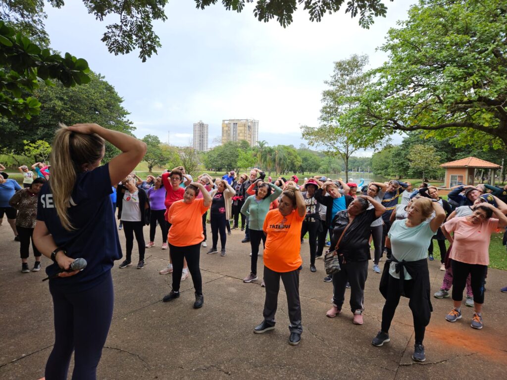 Logo pela manhã, foram realizadas aulas de alongamento, dança circular e macroginástica com a participação de grupos da Terceira Idade e público em geral.