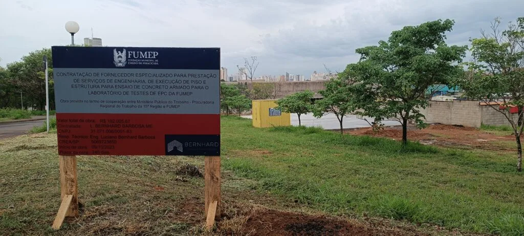A Prefeitura de Piracicaba e o Ministério Público do Trabalho de Campinas (MPT) vão construir na Fumep (Fundação Municipal de Ensino de Piracicaba) o primeiro laboratório de ensaio de equipamentos de proteção coletiva da América Latina. O Laboratório de Ensaio de Equipamentos de Proteção Coletiva terá investimento de R$ 4 milhões, será credenciado pelo Instituto Nacional de Metrologia, Qualidade e Tecnologia (Inmetro) e terá capacidade para fazer ensaios de redes de segurança para a indústria da construção civil e perícias técnicas que atendam às demandas do MPT. A pedra fundamental do prédio será lançada amanhã, quarta-feira, 18/10, às 9h30, na Fumep.