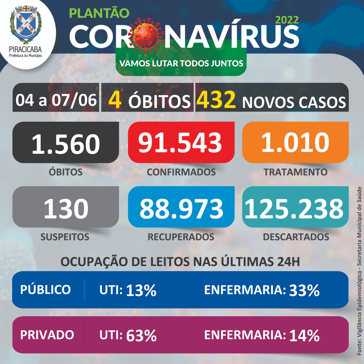 A cidade tem 432 novos casos confirmados, entre os dias 04/06 a 07/06, sendo:
