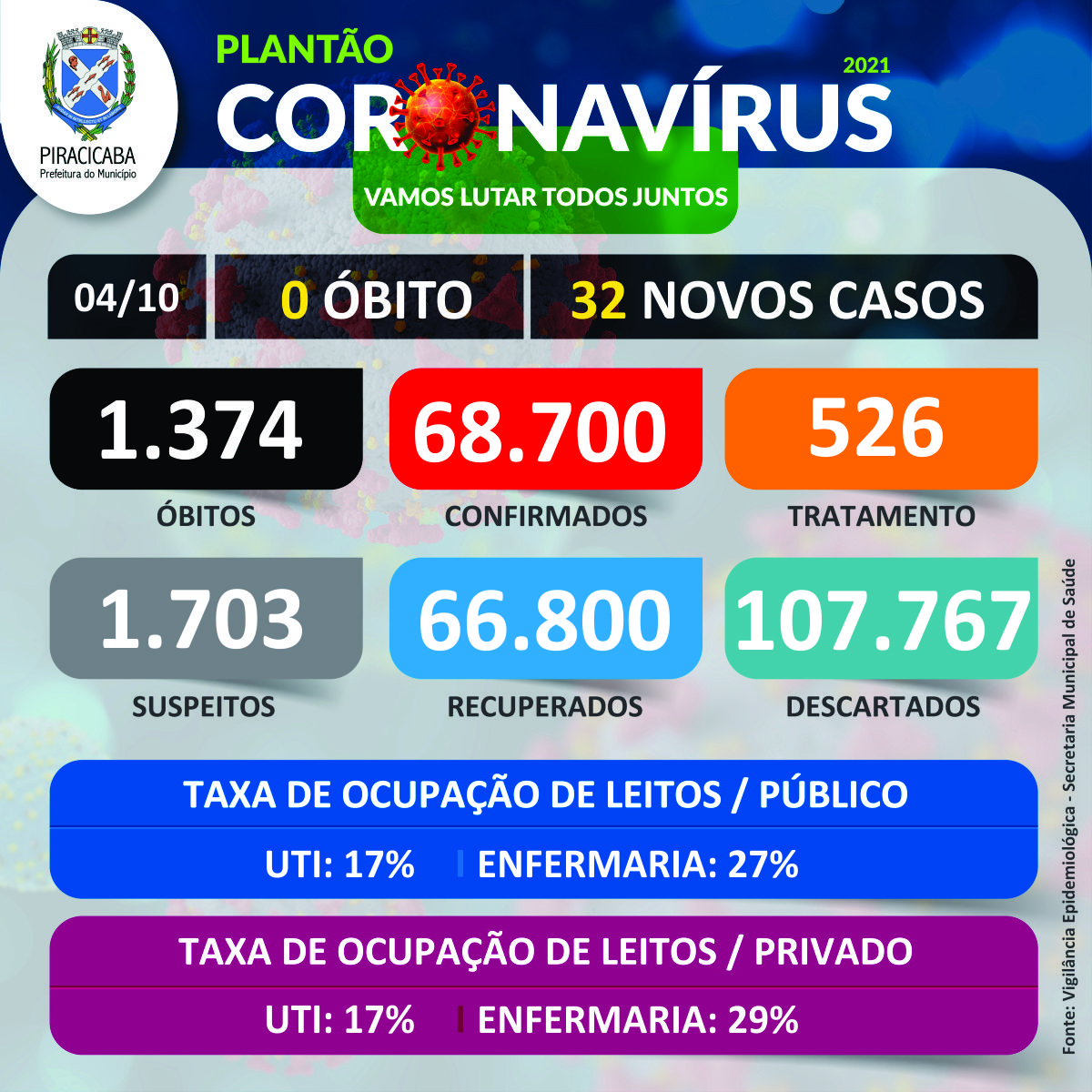 PLANTÃO CORONAVÍRUS – 04/10/2021