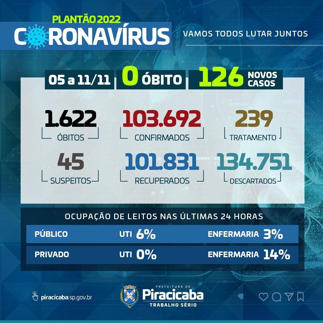 A cidade tem 126 casos entre os dias 05/11 a 11/11, sendo: