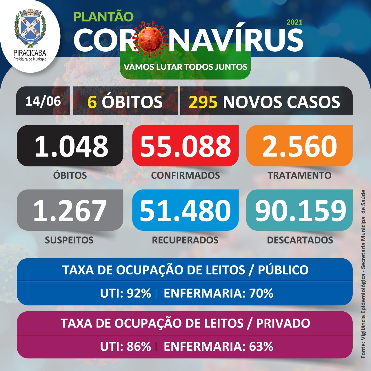 A Secretaria da Saúde registrou 6 óbitos, sendo 4 homens, de 44, 46, 51 e 56 anos e 2 mulheres de 76 e 82 anos.
